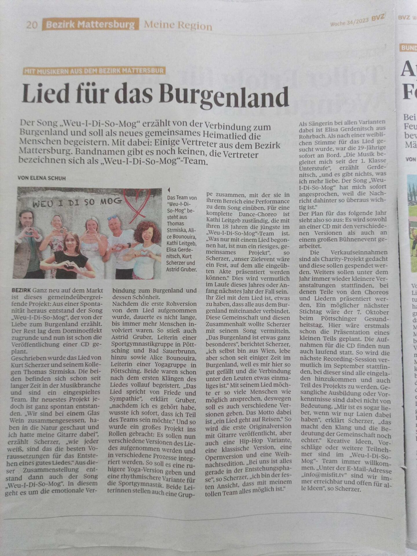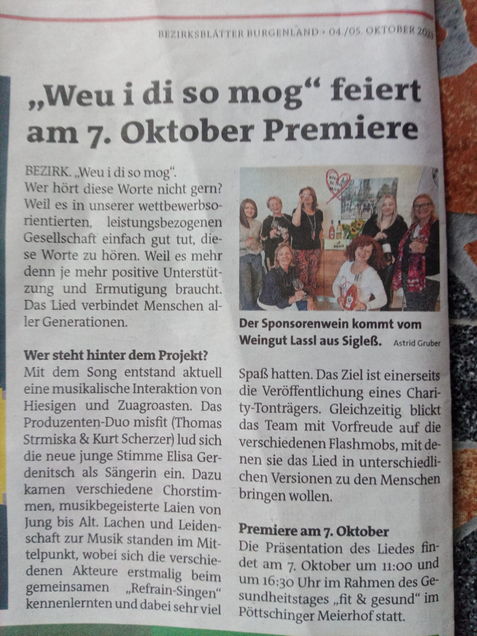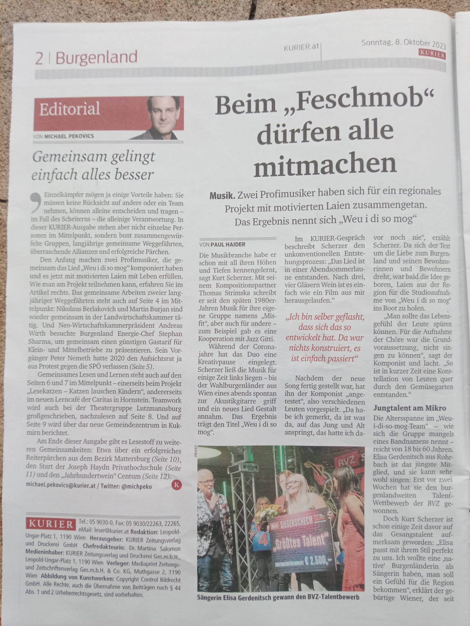 Unsere weu-i-di-so-mog Leadsängerin Elisa Gerdenitsch hat den 1. Platz beim „BVZ sucht das größte Talent Burgenlands 2023“ gewonnen. (Moderation Andy Marek)